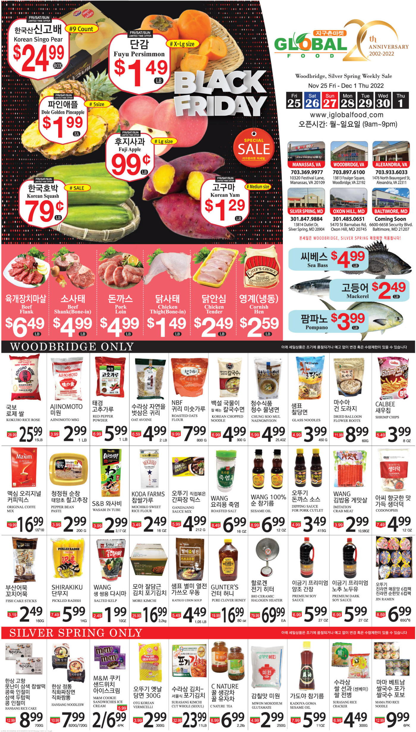 블랙프라이데이 워싱턴 지역 마켓 세일(11/25-12/1)