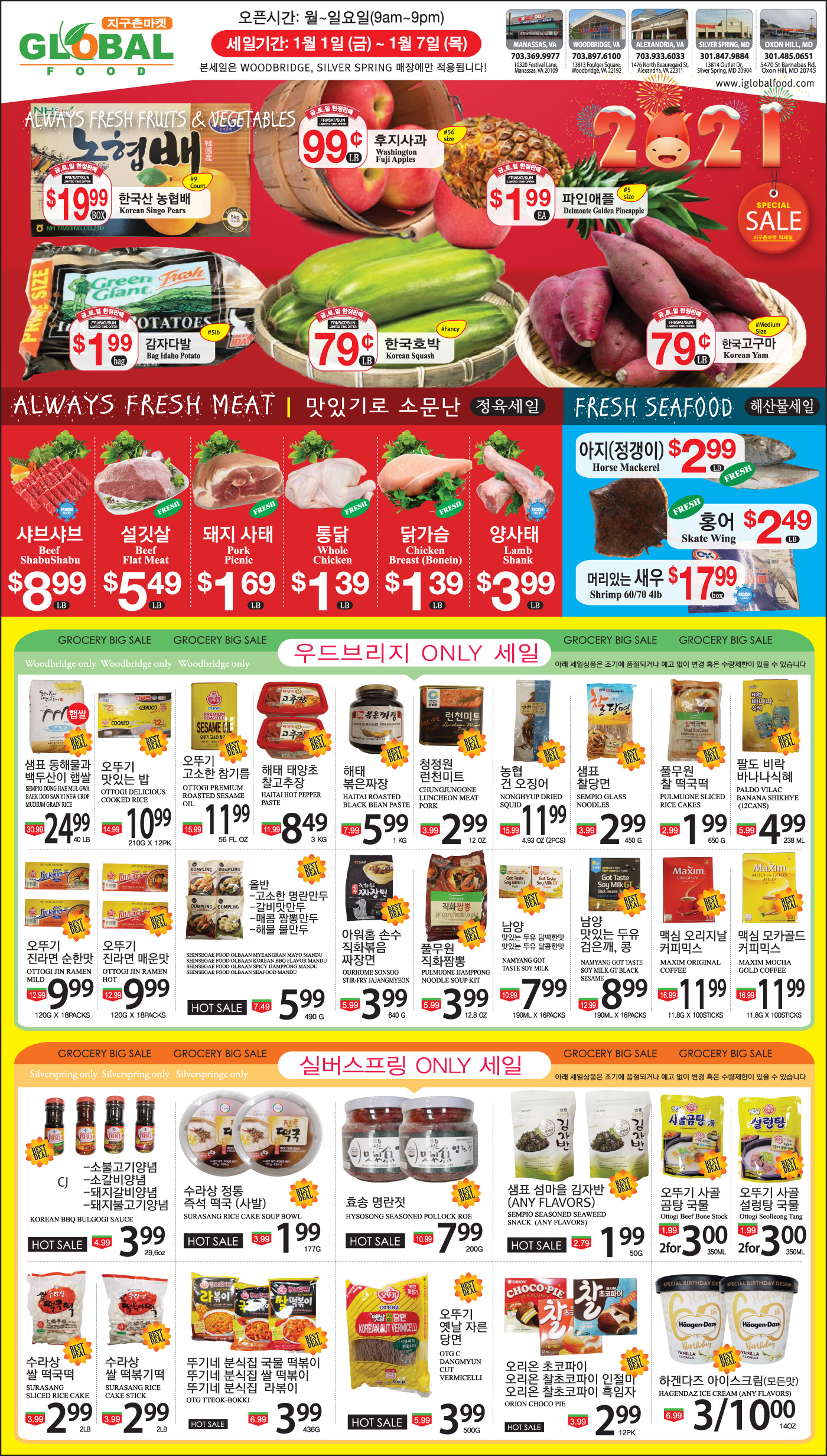 1월1일 워싱턴 지역 마켓 “신년세일”