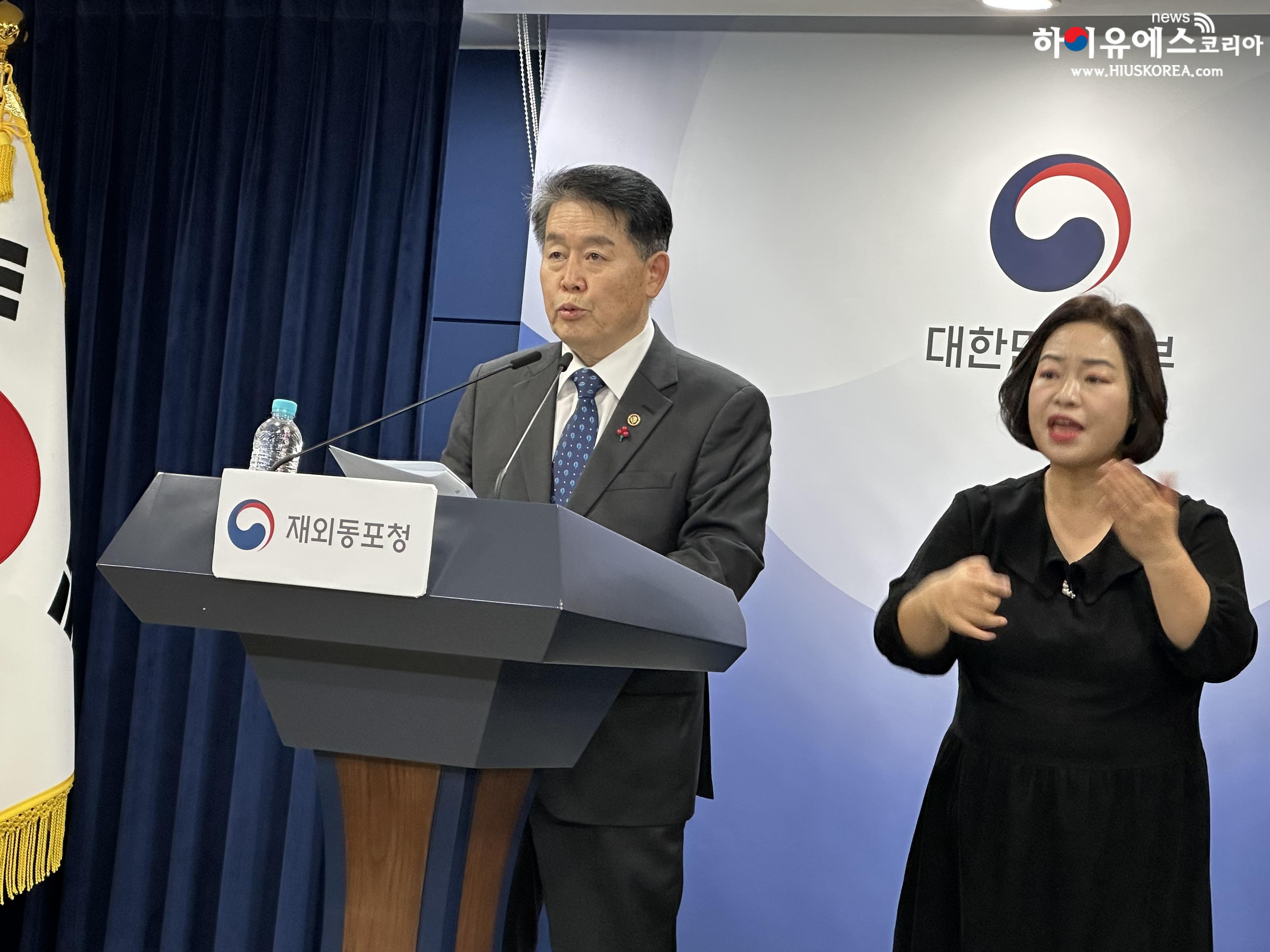 복수국적 제도 개선과 관련해서는 “병역을 마쳤거나 면제된 재외동포에 한해 복수국적 허용 연령을 현행보다 낮춰 만 50세로 하향하는 방안을 우선 추진할 방침”이라며 “정부와 국회 차원에서 단계적으로 추진하고 있다”고 설명했다.