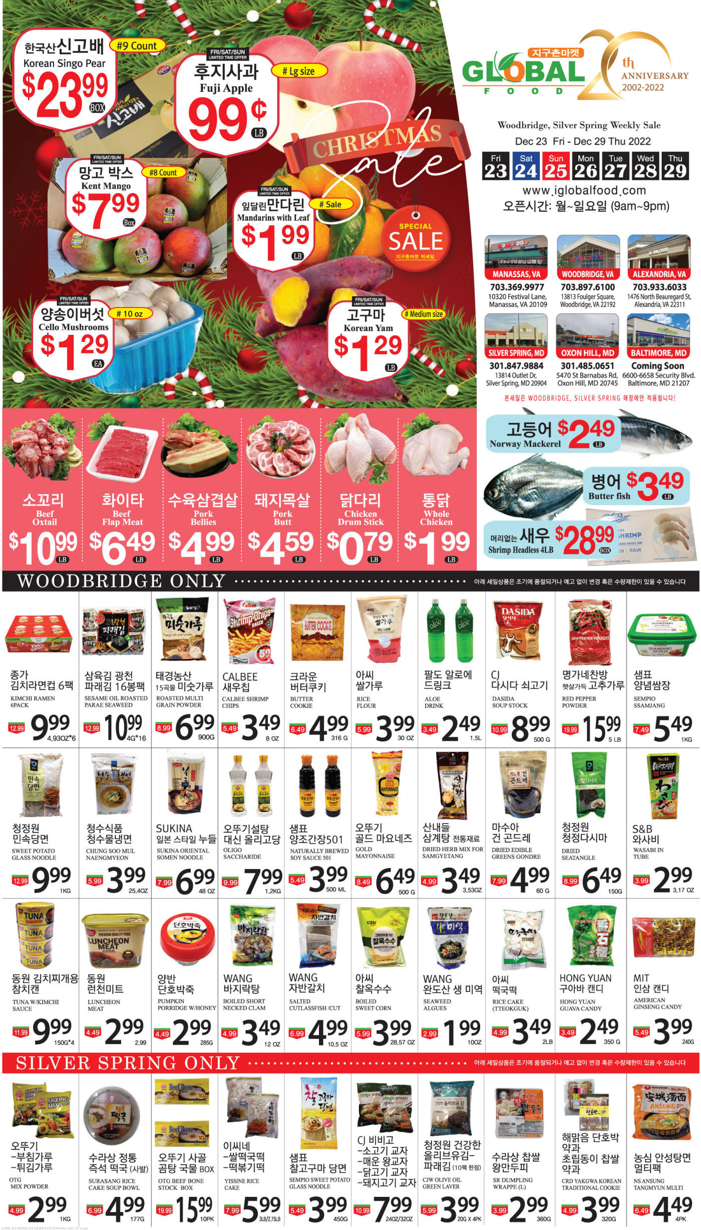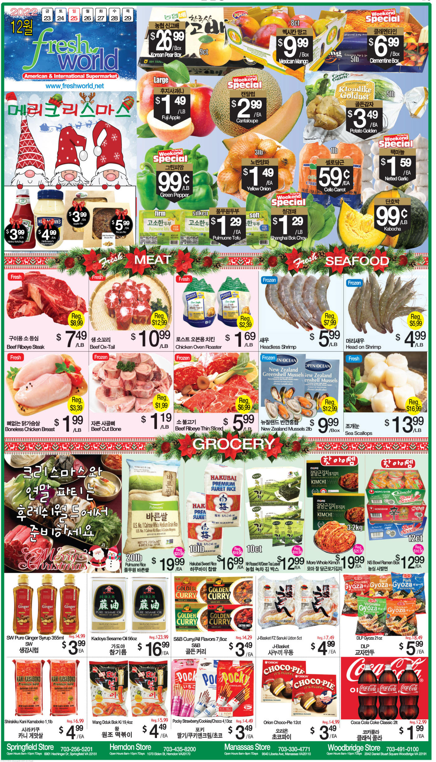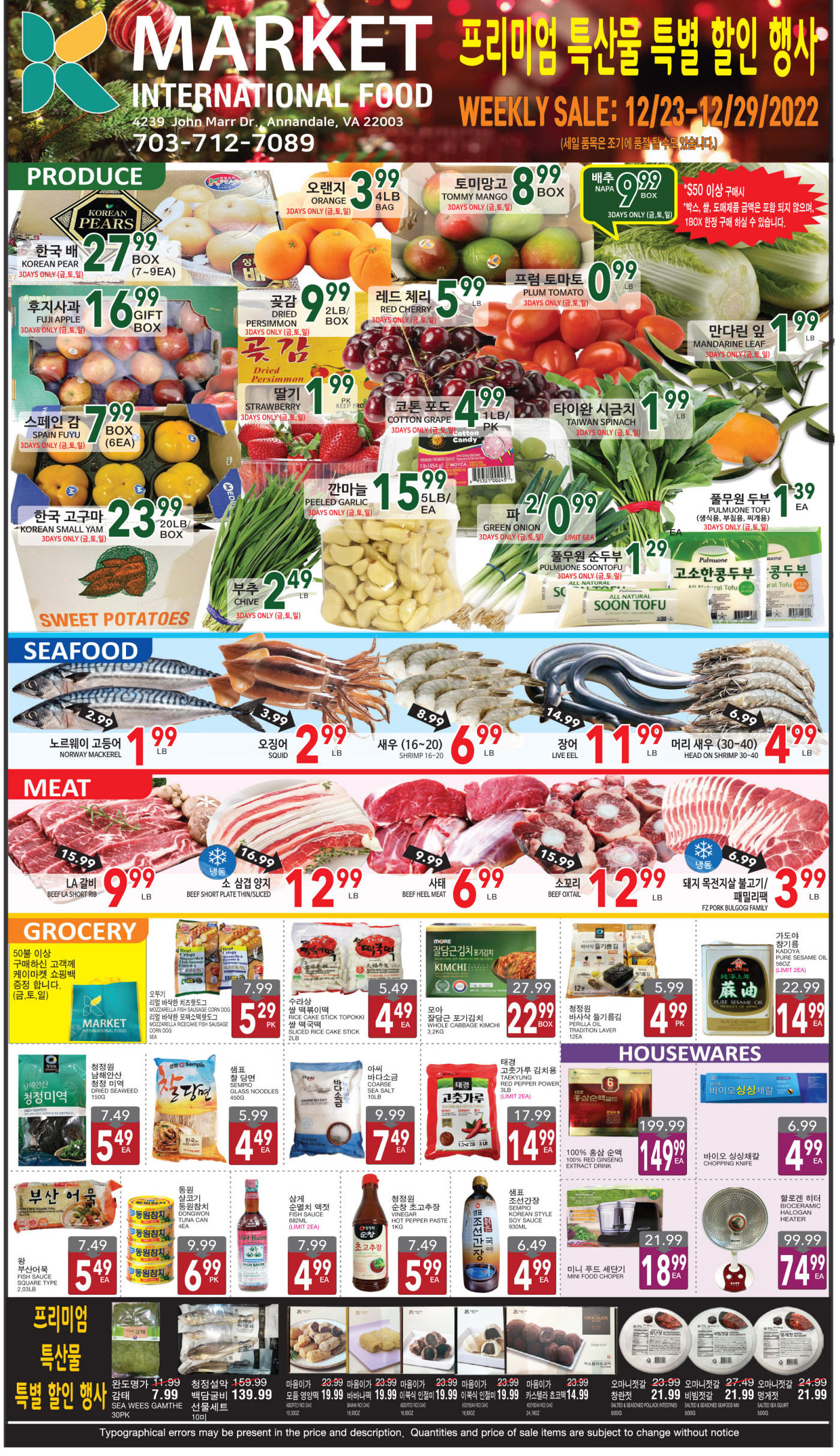 워싱턴지역 마켓 크리스마스 세일(12/23-29)