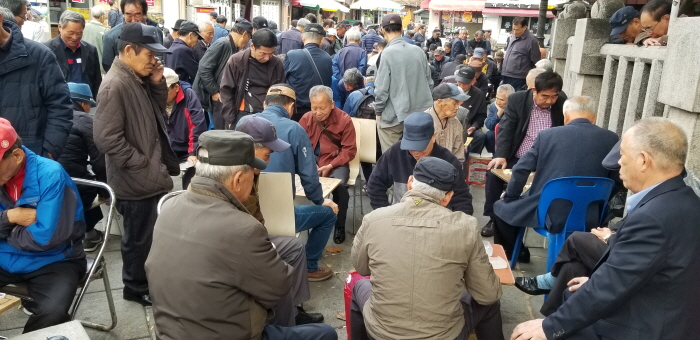 노인들이 가장 많이 모여드는 파고다 공원(탑골 공원)에 갔다. 3.1 운동을 외쳤던 역사적인 곳이다. 삼삼오오 모여서 즐겁게, 때론 심각하게 말씀들을 나누고 계셨다. 은근슬쩍 옆에서 들어보니 시국 문제와 자식들 문제, 그리고 자신들의 군대에서의 무용담들을 나누고 있었다. 현 한국의 정서를 말해주듯 좌우 진영으로 나뉘어 고성과 삿대질도 오가기도 했다.