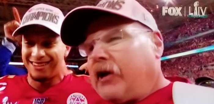 54회 슈퍼볼에서 MVP로 뽑힌 마홈스 선수(왼쪽)와 앤디 리드 헤드코치