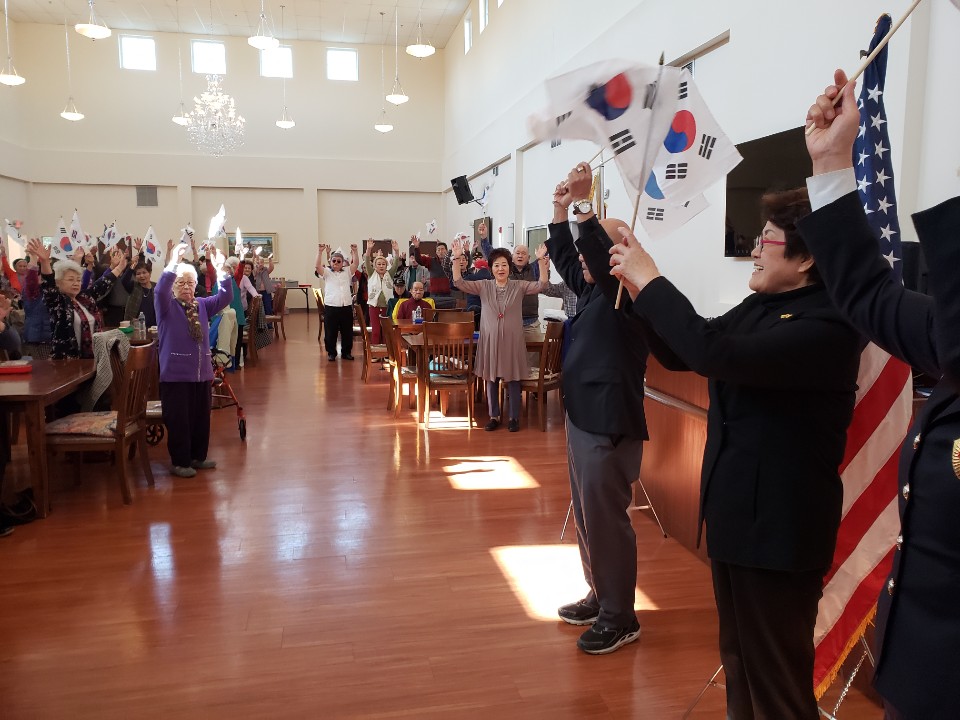 워싱턴 버지니아 한인통합노인연합회(회장 우태창)는 2일 버지니아 애난데일 한인타운 인근 아가페복지센터에서 한인 단체장과 노인 등 170여 명이 참석해 ‘제101주년 3.1절 기념행사’를 개최했다.