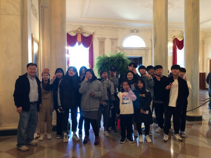 갑자기 추워진 날씨로 새벽에 춥기도 하였지만 설레이는 마음을 감추지는 못하였다. 백악관에 도착하여 4번의 검색을 통과 하였다. 검색 중에 한 학생의 정보가 일치하지 않아 한참을 더 조사 받은 후에 맨 마지막으로 들어 갈 수 있었다. 웅장한 백악관내부에서 사진을 찍고 신기한 마음에 여기 저기 둘러보고 있는데 레드카펫을 깔아 놓은 곳이 보였다. 하지만 우리는 그곳에 발을 올려 놓을 수 없었다. 카펫을 말아 놓았기 때문이다. 학생들은 이구동성으로 나중에 꼭 래드카펫을 걸어 보리라고 다짐들을 하였다.