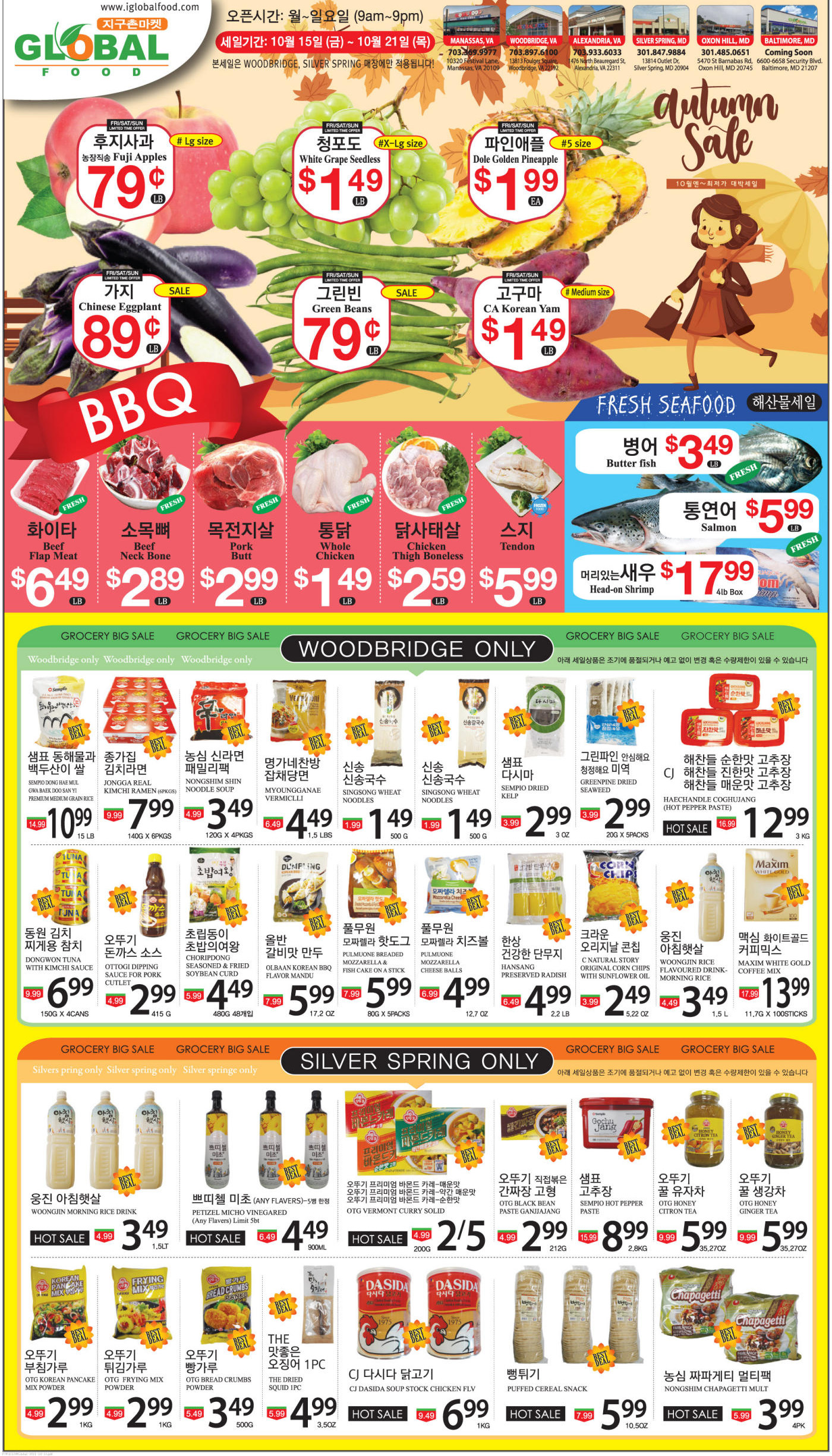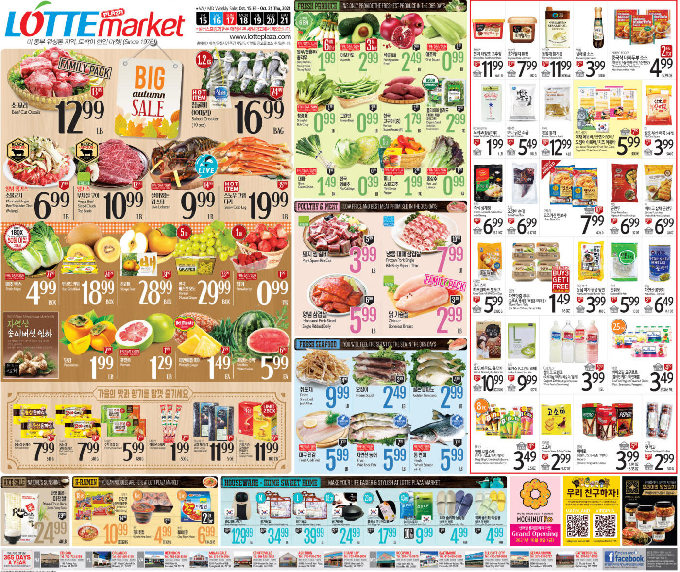 워싱턴지역 한인마켓 세일(10/15-21)
