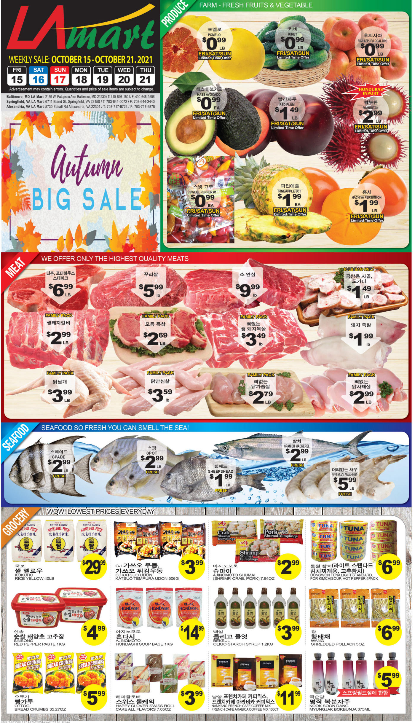 뉴욕&뉴저지 한인마켓 세일(10/15-21)