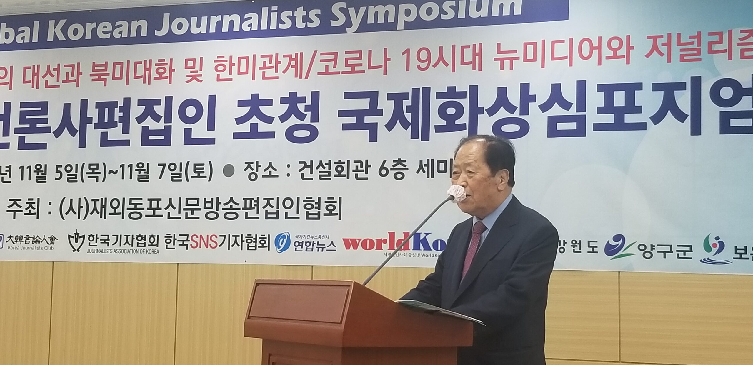 11월 3일부터 7일까지 3일간 열린 이번 국제심포지엄은 미국, 캐나다, 중국, 러시아 등 20여개국 재외동포 언론인과 서울외신기자클럽 소속 영국, 일본 외신기자 등이 참석했고, 심포지엄 마지막 날에는 총회를 개최하여 ‘하이유에스코리아 신문사’ 강남중 대표(미 워싱턴)를 차기 회장으로 인준했다. 강남중 신임 회장은 “포스트 코로나 시대에 대비하면서 회원 배가 운동을 펼치겠다”고 취임사를 하면서, 팔순 노구를 이끌고 협회 발전을 위해 수고가 많으신 박기병 이사장님과, 그동안 수고한 김상욱(카자흐스탄 한인일보) 전임 회장에게 감사의 뜻을 전달했다.