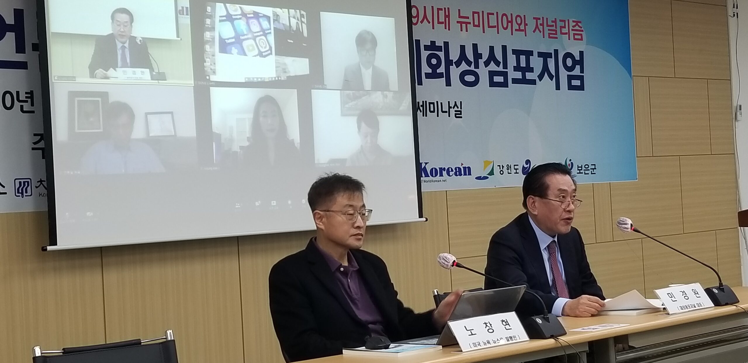 ㈔재외동포신문방송편집인협회(이사장 박기병)는 서울 중구 건설회관 대강당에서 ‘2020 재외동포언론사 편집인 초청 국제심포지엄’을 실시간 대면 및 비대면 화상회의로 개최했다.
