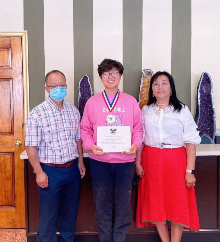 우수한 성적을 자랑하는 김 양은 학교 내의 클럽과 Leading Edge Club에서 대표로 리더쉽을 발휘했을뿐만 아니라 운동부에서는 골프 대표 선수로 여자부문에서 1등을 하는 등 각종 National Tournament 에서 우승과 좋은 성적을 내어 벌써부터 해군사관학교 골프팀에 합류하는 영광을 가지게 되었다.