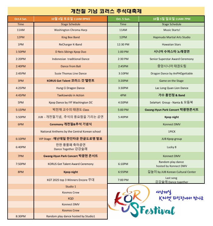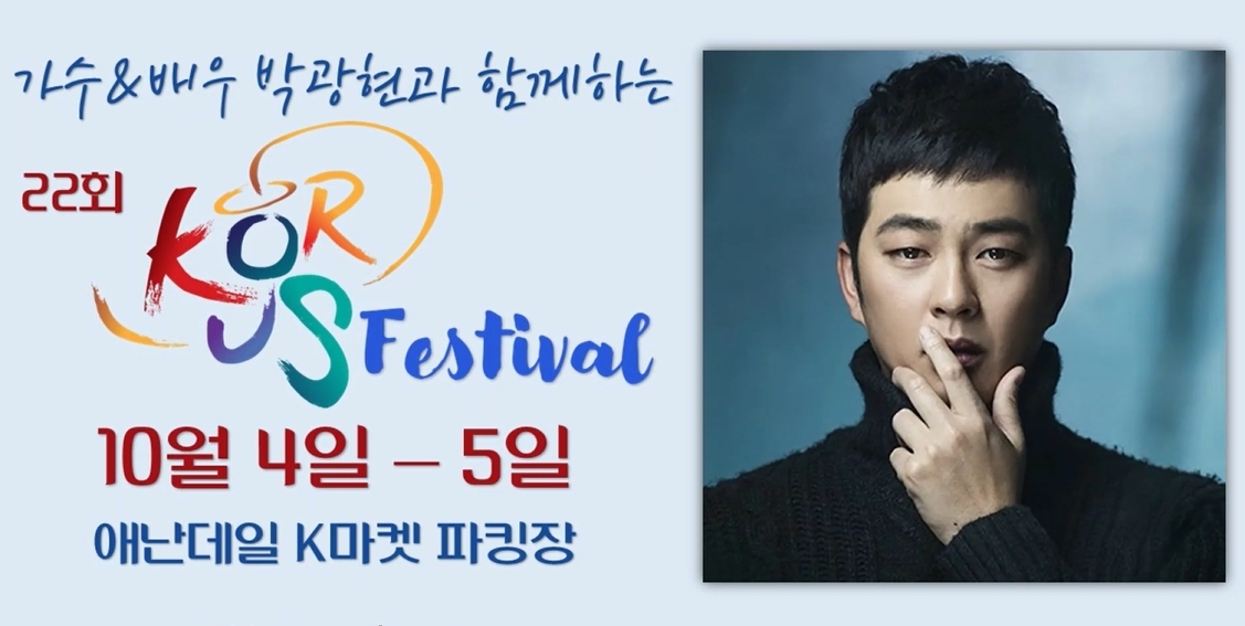 기념식 직후에는 배우 겸 가수 박광현 씨가 무대에 올라 특별 콘서트를 펼쳐 축제 분위기를 한층 뜨겁게 이어간다. 3일 워싱턴에 도착한 박광현씨는 “지난 봄에 행사가 연기되어 가을에 축제를 할때 오겠다고 약속했고 그 약속을 지킬 수 있어 감사하다. 워싱턴 지역의 동포님 들과 미국에 사시는 많은 K팝을 사랑해 주시는 분들에게 기대에 어긋나지 않도록 최선을 다하겠다”고 전했다.