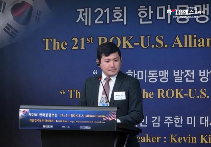 김 대사대리는 “한미동맹은 침략을 억제하고 대화를 지지하며 한반도 비핵화를 향해 굳건히 나아가고 있다”며 “단순한 군사동맹을 넘어 우리 동맹이 모든 부분에 관여하고 있다”고 말했다. 이어 “미국의 미래는 한국에, 한국의 미래는 미국에 달려있다”고 전했다.