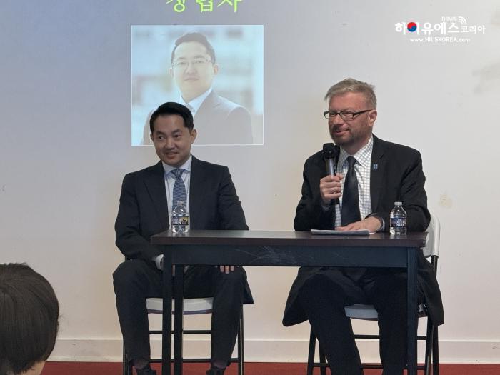 이어 미주통일연대워싱턴 에스더 김 고문은 ‘중국의 탈북자 강제북송 문제’를 주제로 발표했다. 그는 탈북 경로가 다양하게 형성되어 있지만 어느 곳 하나 안전한 길이 없으며, 탈북민들은 생명을 걸고 국경을 넘고 있다고 전했다. 또한 “현재 대한민국의 상황 속에서 탈북민들이 불안에 떨고 있으며, 두 국가론이 고착화될 경우 신분 보장이 더욱 어려워질 수 있다”고 우려를 나타냈다.