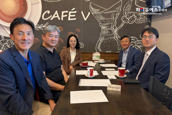 애난데일 한글도로명 추진위원회는 지난 4월 17일(금) 오전 10시, 애난데일 카페 V에서 문인석 주미한국대사관 총영사와 만나 현재 프로젝트 진행 상황을 공유하는 자리를 가졌다. 이날 추진위원회에서는 스티브 리 위원장, 황원균 공동위원장, 마크김 전 버지니아 하원의원이자 KAI대표, 그리고 고은정 워싱턴지구한인연합회 수석부회장이 자리를 함께하며 한글 도로명 현판 디자인 방향과 향후 일정 및 절차 등을 심도 있게 논의했다.