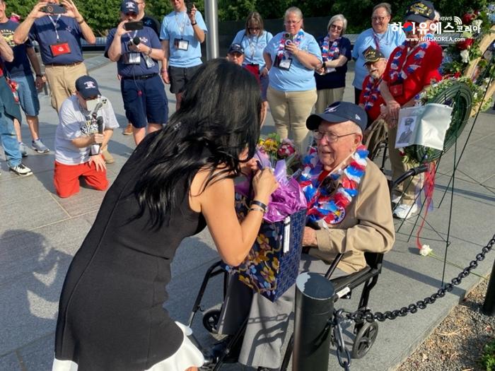 대한민국 정부의 메달을 목에 건 캐스터라인 예비역 상병은 벅찬 감정을 감추지 못했다. 그는 “오늘은 내 생애 최고의 날”이라며 깊은 기쁨을 표한 뒤, “한국전에 참전했던 순간순간은 지금도 생생하게 머릿속에 떠오르는데, 시간이 이렇게 흘렀음에도 한국 정부와 미주한미동맹재단이 잊지 않고 감사를 전해줘서 무척이나 영광스럽다”고 소감을 밝혔다.