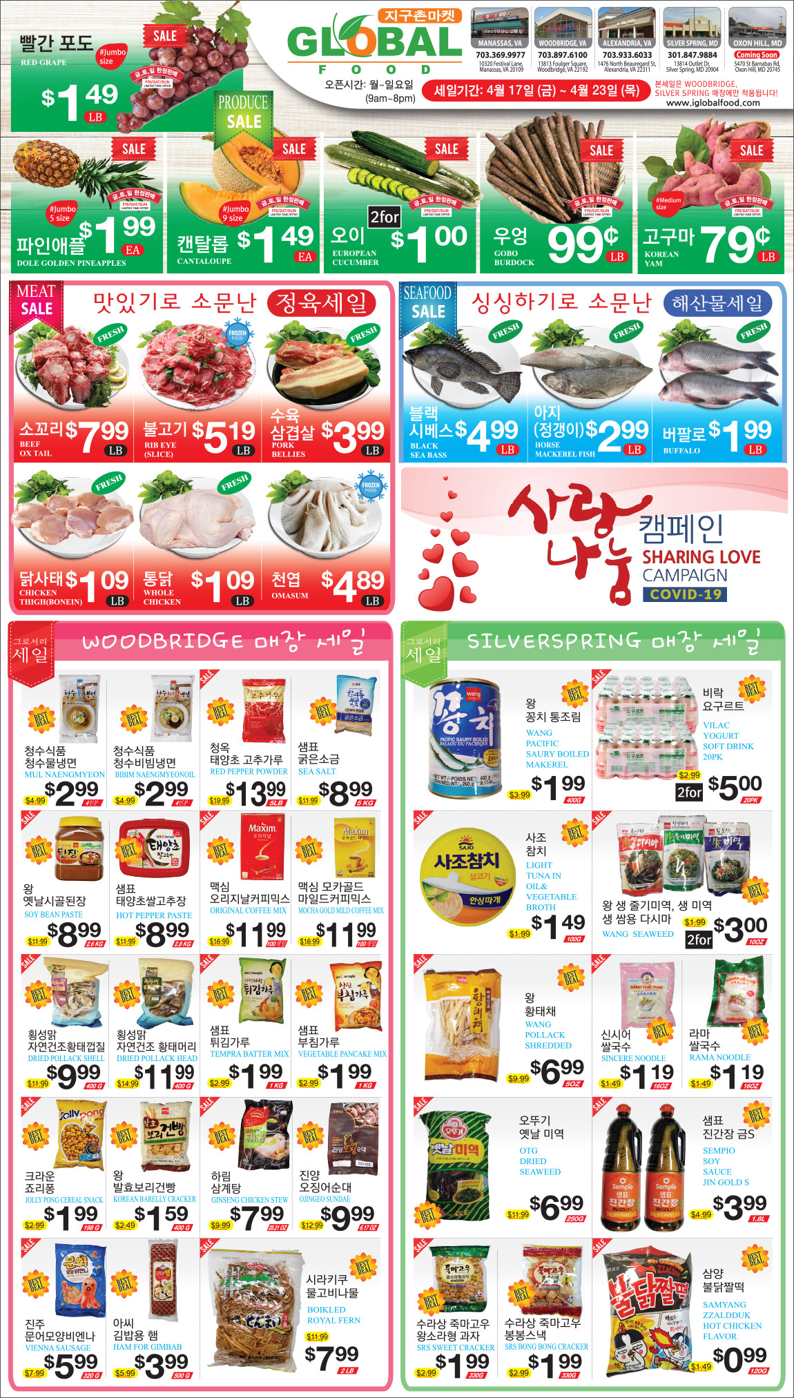 한눈에 비교할 수 있는 “주말 한인마켓 세일 정보” – 4월 17일