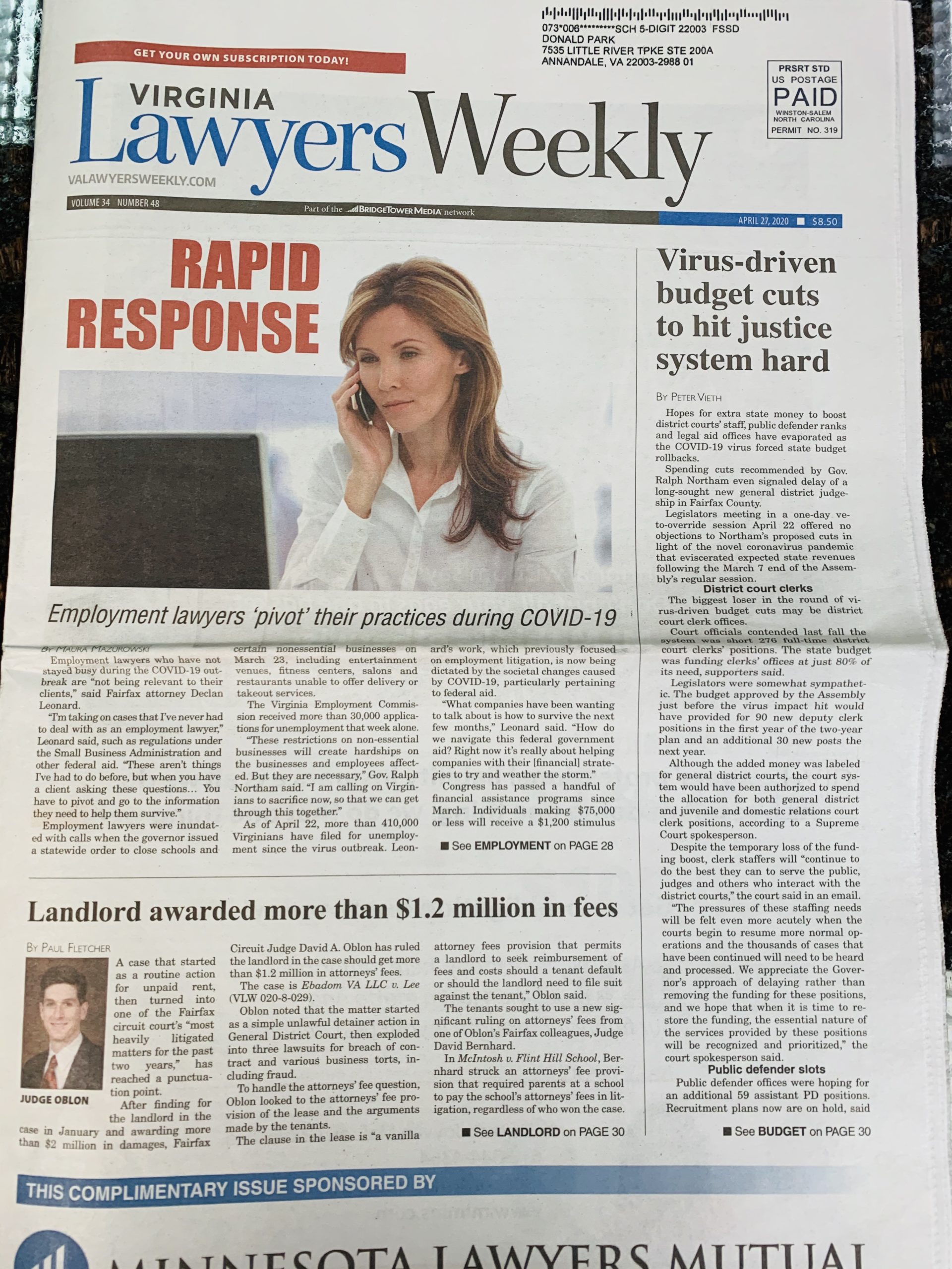 지난 4월 27일 버지니아 변호사 주간신문에는 “애난데일에 소재한 한인 식당 건물주(스티브 리)가 임대 계약자 이바돔 푸드사와의 3년간 소송에서 승소했다”라는 기사가 올랐다. 미지급 임대료에 대한 일상적인 조치로 시작된 사건은 “근래 2년 동안 페어팩스카운티 순회법원에서 가장 소송이 복잡한 사건으로 변했다”며, 임대 분쟁은 계약 위반을 비롯해 사기 그리고 사업 음모 등으로 확대돼 어지러움을 가중시켰지만 결국 건물주가 이바돔측으로부터 소송 비용 123만 달러와 피해 보상금 2백만 달러 등 총 320만여 달러의 배상을 받게 되었다고 했다.