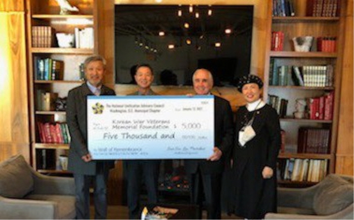 민주평통 워싱턴협의회(회장 이재수)는 13일 제 16회 미주한인의날을 맞아 한국전 참전기념공원내 추모의 벽 건립을 위한 후원금을 미 재향군인회 재단 사무실을 통해 전달했다.
