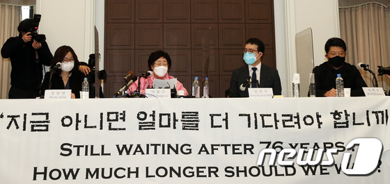 <사진> 일본군 위안부 피해자 이용수(93) 할머니가 16일 서울 중구 프레스센터에서 열린 기자회견에서 일본의 반성을 호소하고 있다. 이 할머니는 이 자리에서 위안부 피해자를 ‘자발적 매춘부’라고 규정한 마크 램지어 하버드대 교수의 역사왜곡을 규탄하며, 피해자 중심 문제 해결을 위해 위안부 문제를 국제사법재판소(ICJ)에 회부해 달라고 요청했다. 이용수 할머니는 오는 17일 미국 하버드대 학생들이 여는 온라인 세미나에서 위안부 피해에 대해 증언한다. 2021.2.16/뉴스1 © News1 오대일 기자