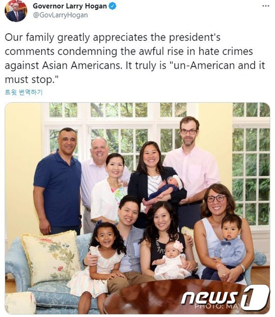 20여년 전 유미 호건과 결혼해 ‘한국 사위’라고 불리는 래리 호건 미국 메릴랜드 주 주지사가 14일(현지시간) 자신의 아내와 세 딸들이 신종 코로나바이러스 감염증(코로나19) 시국에 한국계라는 이유로 인종차별을 당했다고 비판했다.