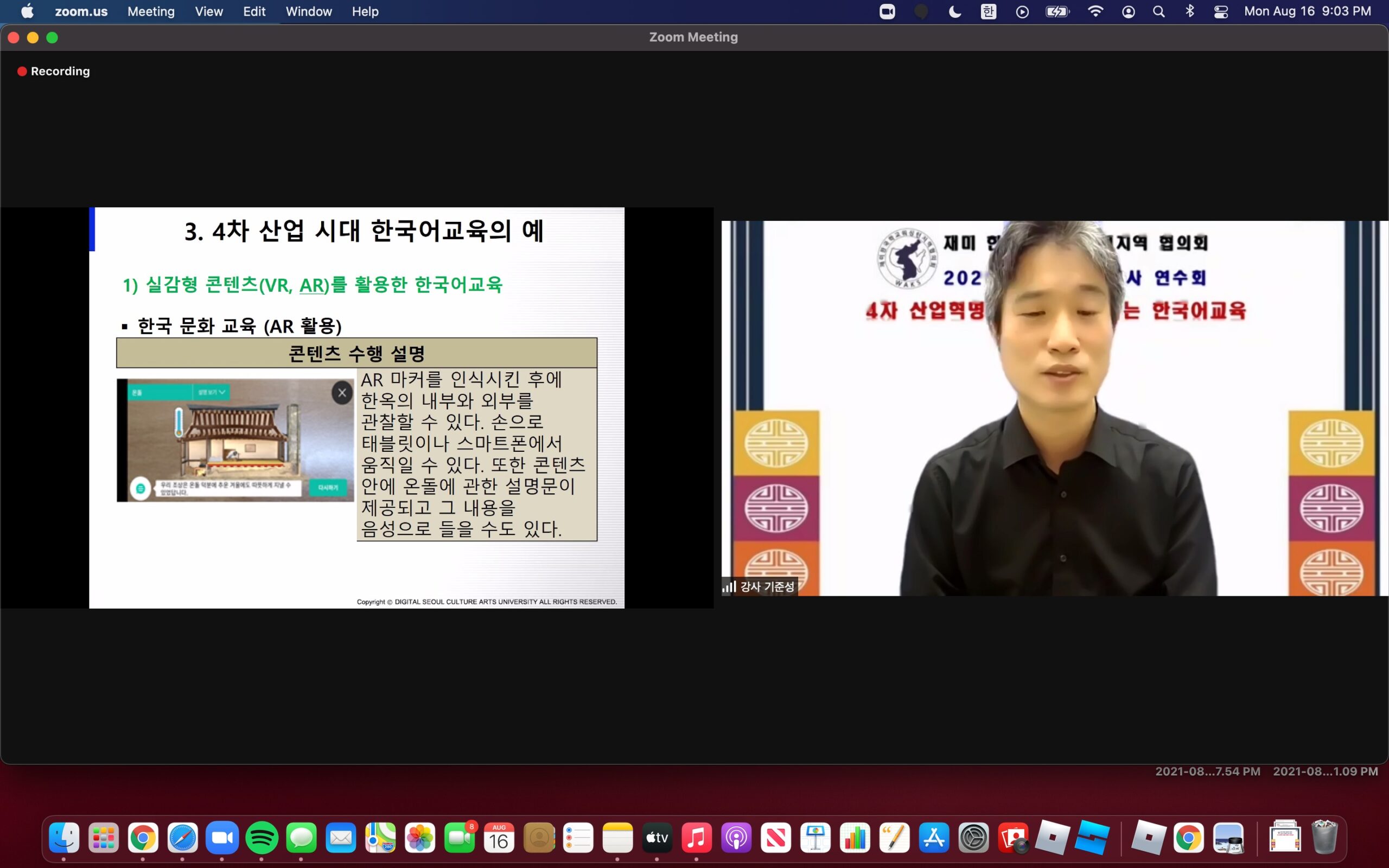 350여명이 참가하여 온라인으로 진행된 연수회는 8월 16일 부터 20일까지는 1단계로 ‘교사의 기초 다지기’란 주제로 매일 오후 진행했고, 21일 토요일은 2단계로 ‘한국어 수준별 교육효과 높이기’란 주제로 진행되었다.