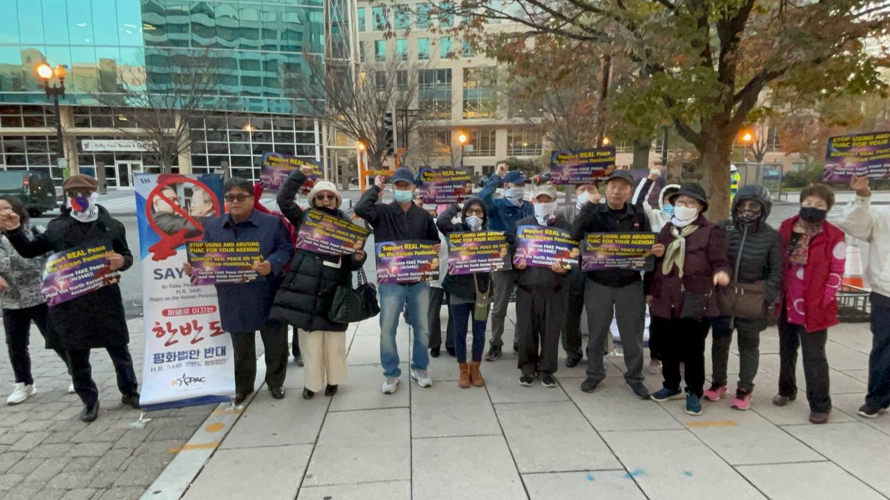 미주보수주의연합(KCPAC) 패트릭 강 사무총장, 워싱턴노인연합회 우태창 회장을 비롯한 미 동부지역 우파단체들은 평화컨퍼런스 행사장인 힐튼호텔과 의사당 앞에서 추위를 무릅쓰고 규탄 집회를 열었다.