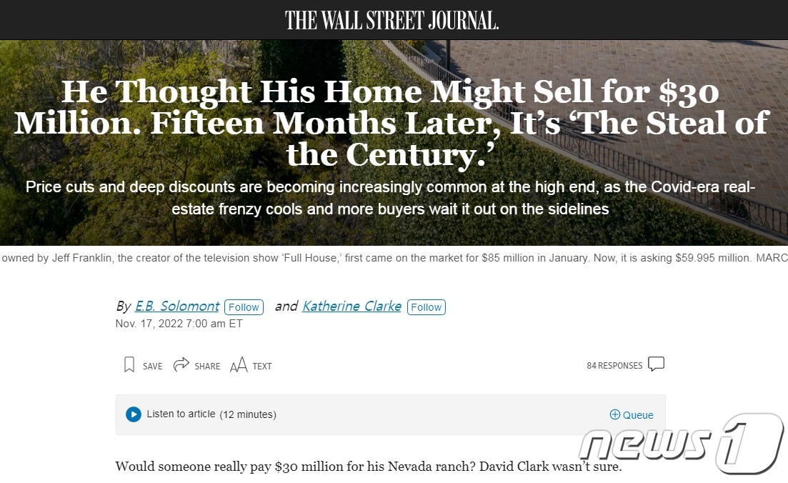 모기지(주담대) 금리상승, 경기의 급격한 둔화로 미국의 부동산 가격도 폭락하고 있다고 월스트리트저널(WSJ)이 18일(현지시간) 보도했다.