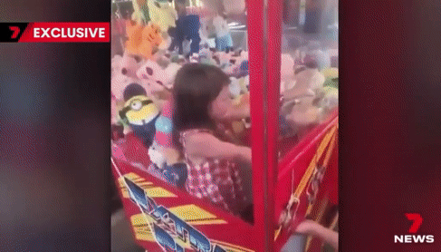 호주의 한 4세 어린아이가 인형 뽑기 기계에 들어갔다가 갇혀 울음을 터뜨린 모습이 화제를 모았다.