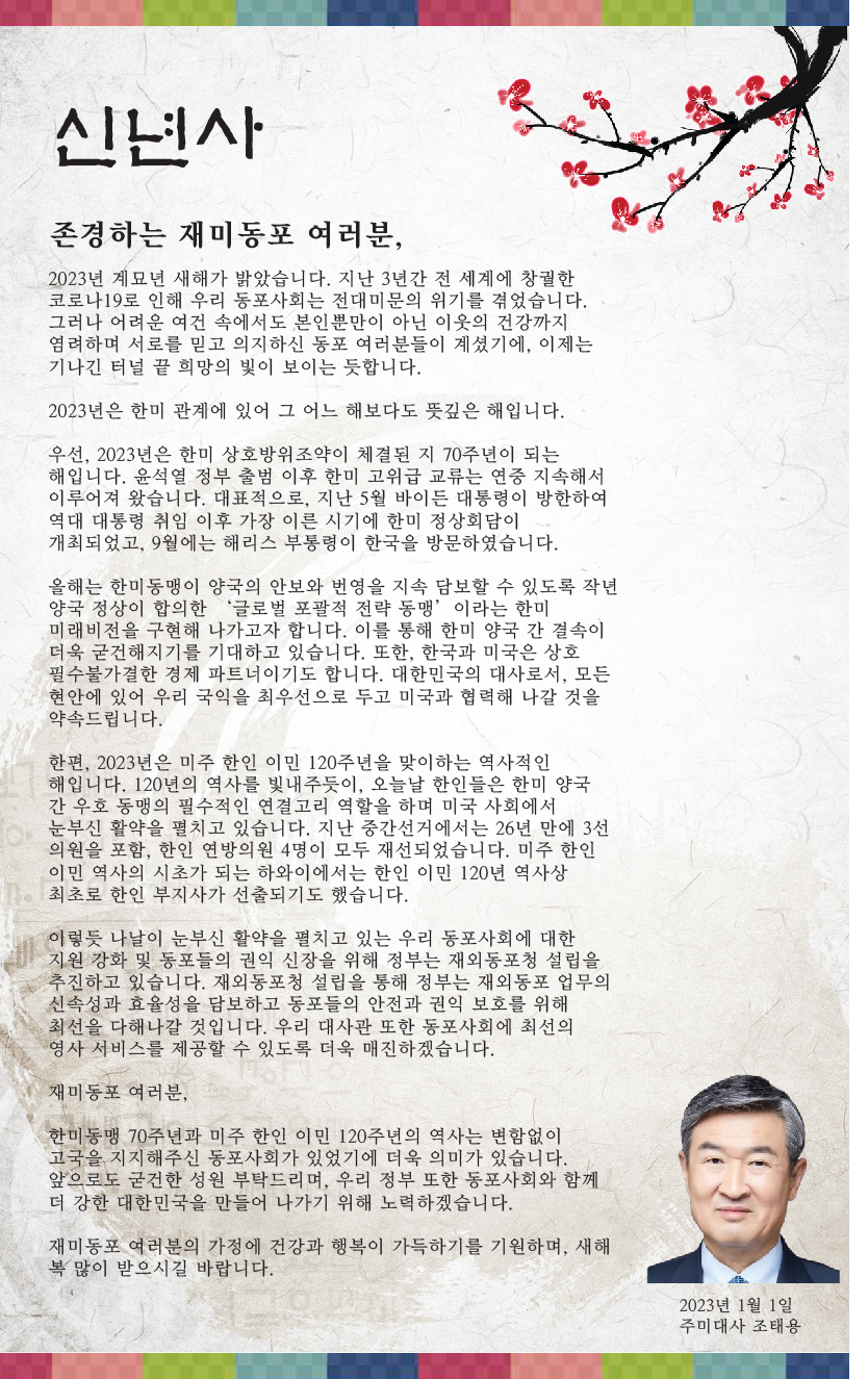 [신년사] “2023은 글로벌 포괄적 전략 동맹의 한미관계”… 조태용 주미대사