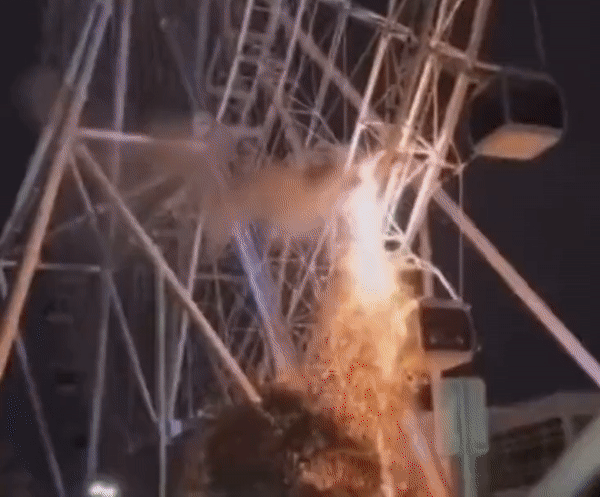 SNS에 올라온 사진과 영상에는 대관람차 한 칸에서 스파크가 일면서 검은 연기가 나는 모습이 담겼다. 목격자들은 불꽃이 튄 다음 전원이 꺼졌다고 말했다.