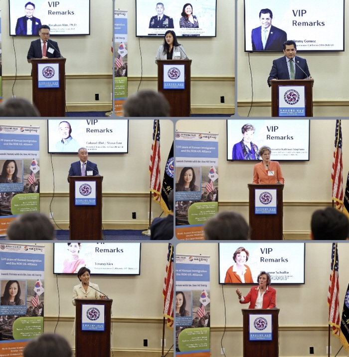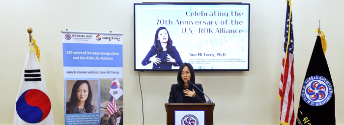 앤디 김(뉴저지, 민주당), 영 김(CA, 공화당), 지미 고메츠(CA, 민주당) 등 연방의원들과 스티븐스 전 주한미대사, 스티브 리 한국전참전기념공원재단 회장, 스진 숄티 디펜스 포럼 회장을 포함 50여 명의 인사들이 참석한 가운데 오찬을 겸한 강연에서 수미 테리 국장은 “한인 이민자들과 미국은 이제 이민 120주년과 한미동맹70주년을 맞아 더욱 하나가 되고 있다”면서 지난 성탄절 즈음에 버팔로에서 한인 관광객들이 눈폭풍에 고립되어 있을 때 미국 가정이 한인 관광객들을 집으로 들어오라고 해서 어려움에 처한 한인들을 도와주고 함께 한국 요리를 해 먹으면서 특별한 성탄절을 보낸 일이 있었다고 했다.