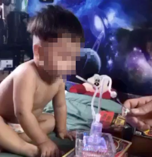 베트남에서 기저귀를 찬 아기가 필로폰으로 의심되는 마약을 흡입하는 영상이 SNS에 퍼지며 충격을 주고 있다.