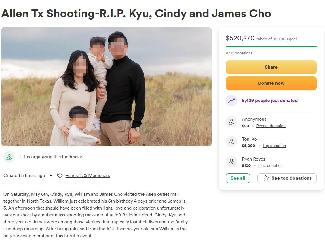 텍사스 댈러스 교외 쇼핑몰 총기 난사 사건으로 희생된 한인교포 일가족의 사연이 알려지면서 안타까움을 더하고 있다.