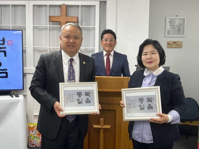 애난데일 소재 블레싱교회(김재학 목사)에서 28일 주일 예배시간에 블레싱교회와 탈북민 포도원 교회(임은혜 목사) 가 자매결연을 했다.