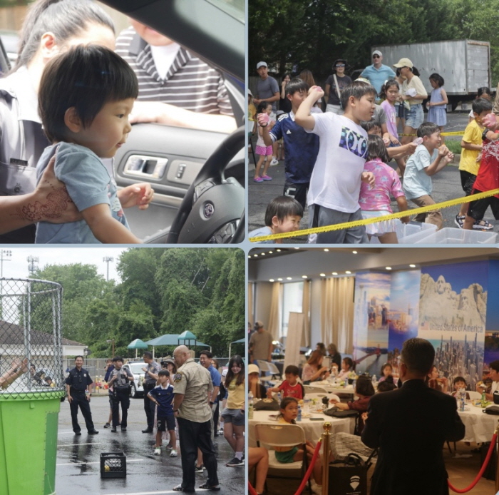 2일 알렉산드리아소재 코리안커뮤니티센터에서는 경찰들이 어린이들과 함께 물풍선던지기와 각종게임 그리고 음식과 레크레이션을 나누는 행사가 열렸다. 이날 행사에는 150여명이 참석하여 어린이들에게 아이디를 만들어주고 안전교육도하는등 뜻있는 행사를 한 것이다. 경찰관들과 좋은마음연구소(스페이스, 회장 그레이스송)이 함께 진행한 이번 행사는 무서워 보이기만 했던 경관들이 어린이들의 물풍선에 맞아 물속에 빠지고 물총놀이도 하는등 친해지는 시간을 가지고 에어 바운스에서 함께 즐겨 어린이들을 즐겁게 해 주었다.
