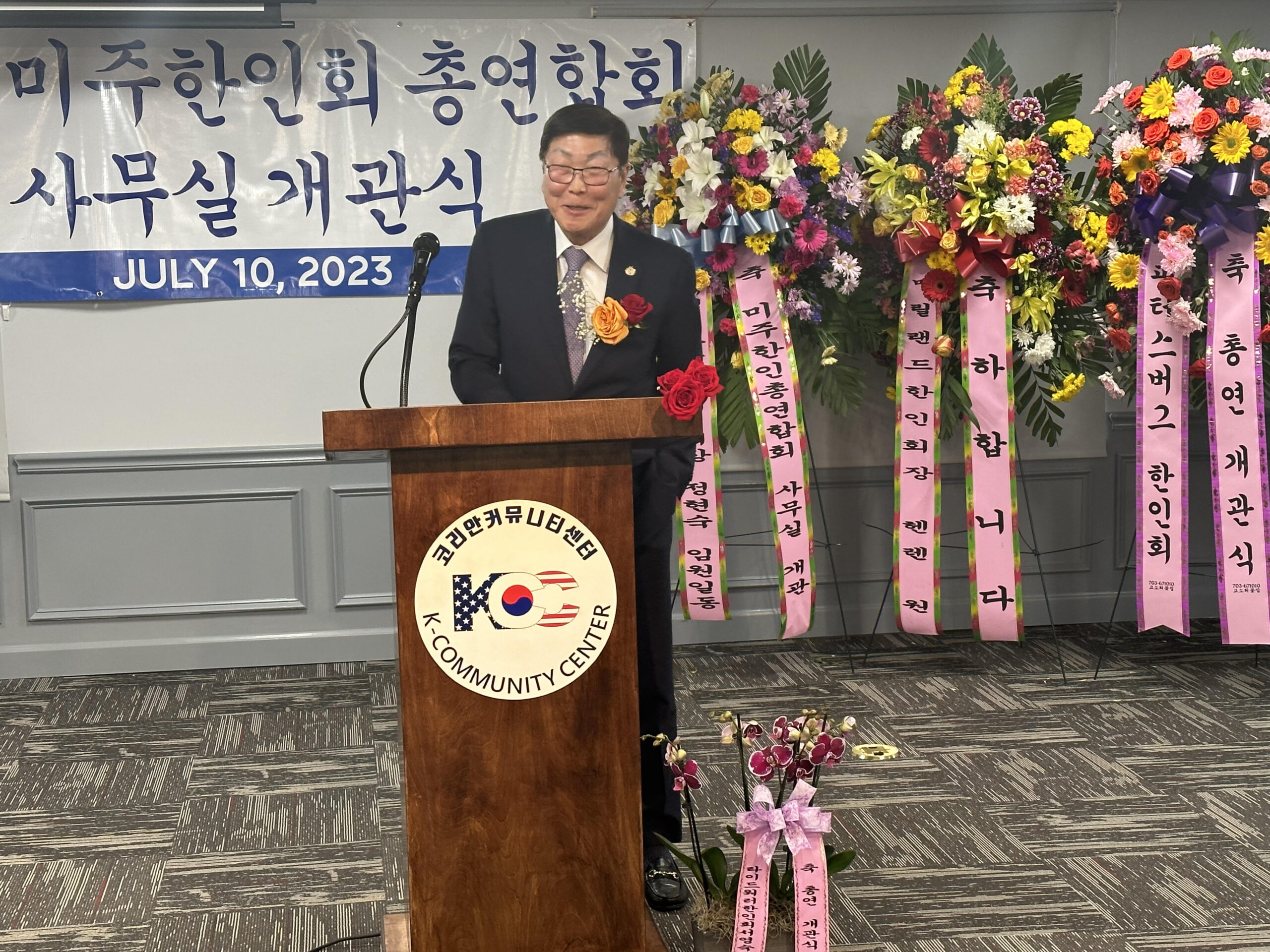 김태환 코리안커뮤니티센터 이사장은 “총연의 입주를 축하한다”며 “이전 사무실을 파는 과정이 평탄하지만은 않았다.나도 총연회원이다. 임기 중 대강당 무료사용 등 최대한의 편리를 제공하겠다”고 약속했다.