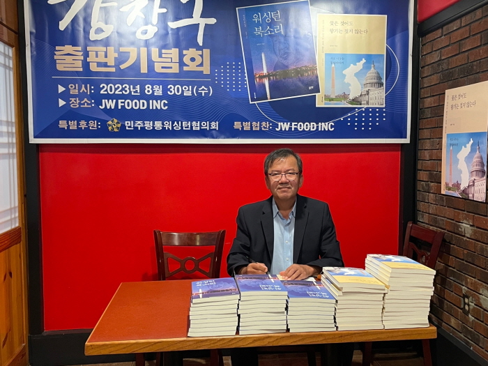 강창구(20기 워싱턴 평통회장)씨가 두 권의 책(워싱턴 북소리, 꽃은 젖어도 향기는 젖지 않는다)의 책을 내고 30일 버지니아 애난데일 소재 장원반점 식당에서 책 사인회를 했다.
