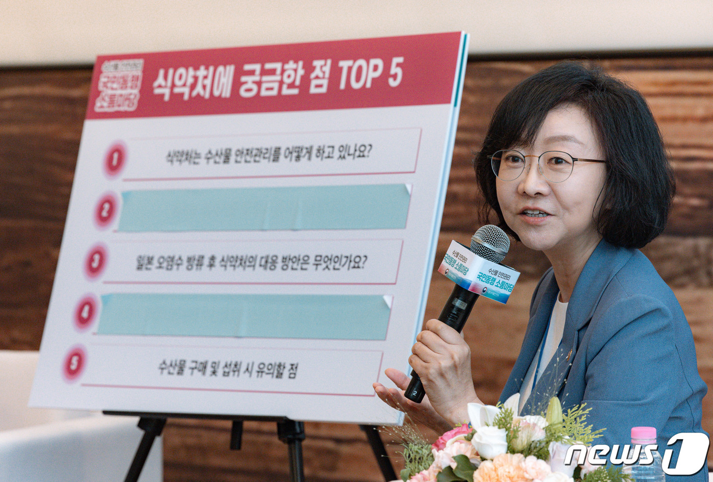 오 처장은 29일 서울 중구 소재 커뮤니티하우스 마실에 국민 50명을 초청해 ‘수산물 안전관리 국민동행 소통마당’을 열고 수산물 방사능 안전관리 현황을 소개하며 즉석 질문을 받았다.