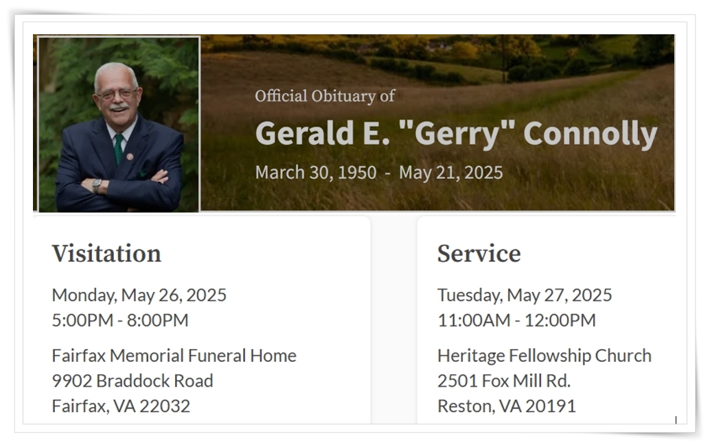고 코널리 의원은 연방 의회에서 2009년부터 활동하며 공무원 권익 보호, 정부 개혁, 지역사회 발전 등에 헌신해왔다. 그의 별세는 지역사회는 물론 미 전역에 큰 충격과 슬픔을 안겼다.