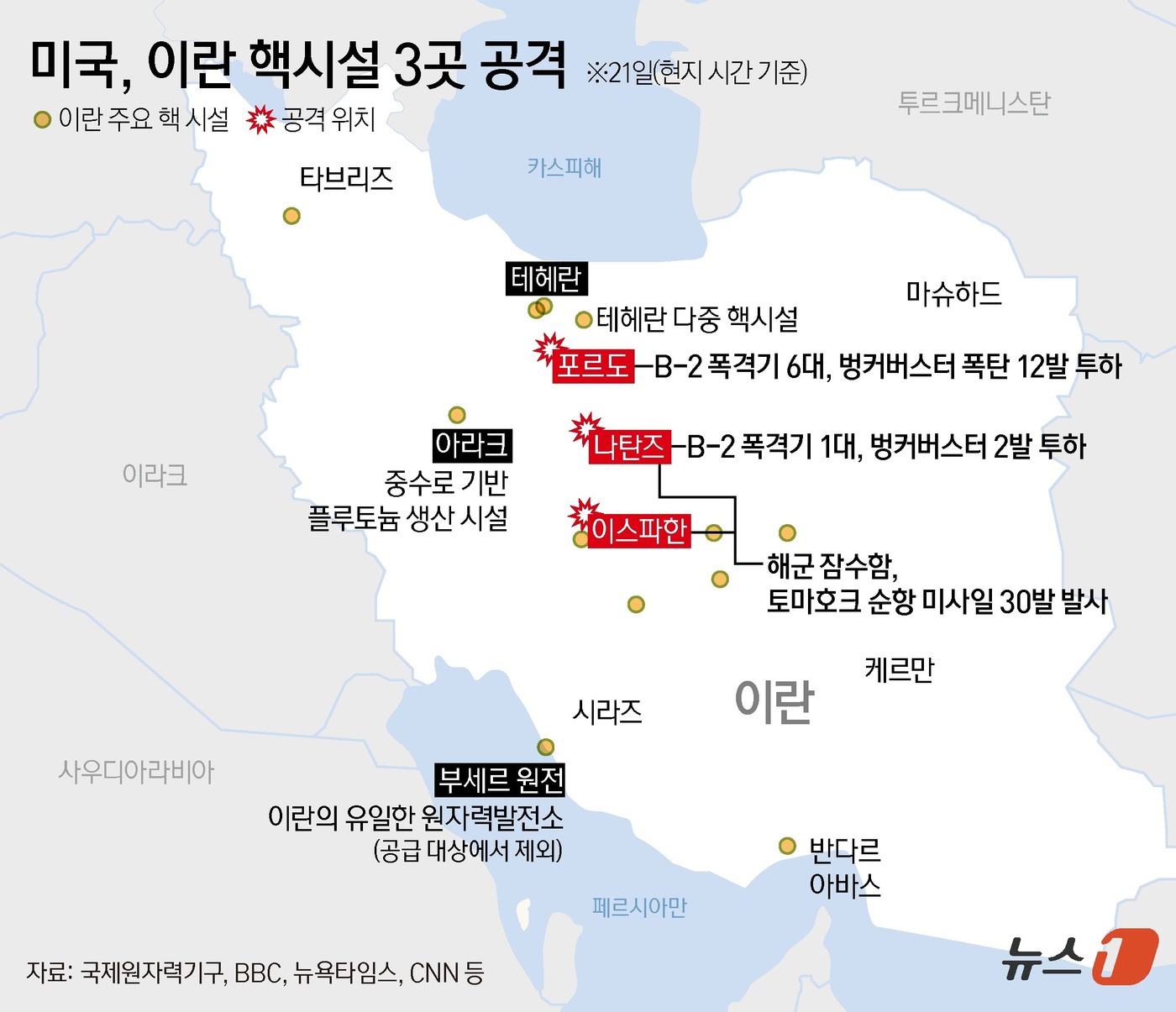 트럼프 대통령은 21일(현지시간) 백악관에서 진행한 대국민 연설에서 포르도와 나탄즈, 이스파한 등 이란 핵심 핵시설 3곳에 대한 정밀 타격이 이뤄졌다고 밝히면서 “이 타격이 놀라운 군사적 성공이었다”고 평가했다.