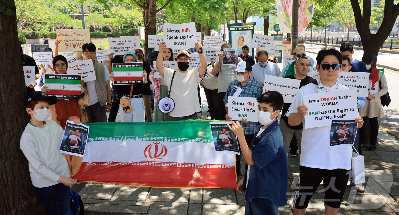 22일 체한 이란인 모임 참석들이 이란‧이스라엘 즉각 휴전을 촉구하는 집회를 하고 있다.