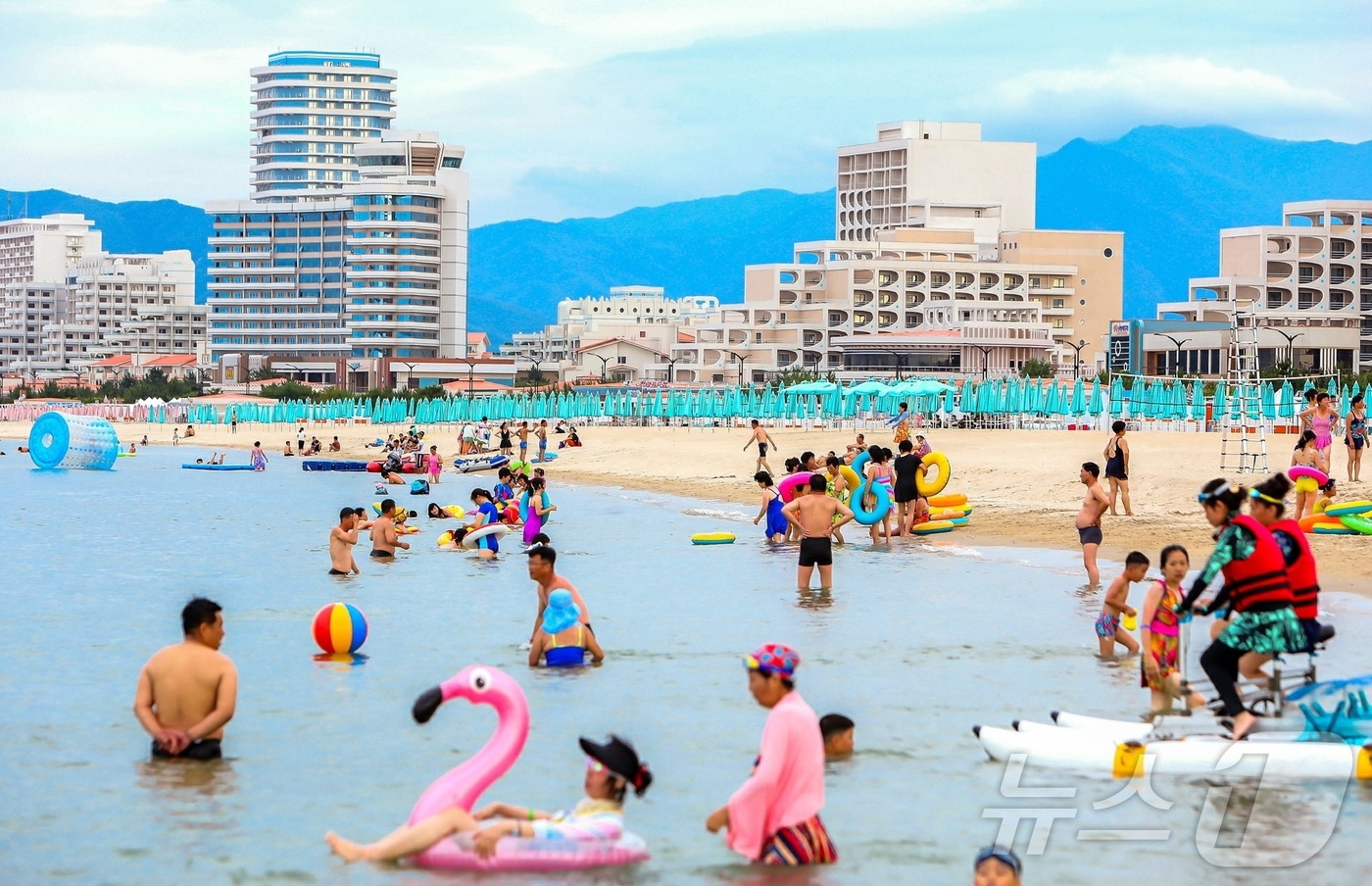 해변에서 일광욕하고 수영하는 북한 주민들도 마침 이날 등장했다.