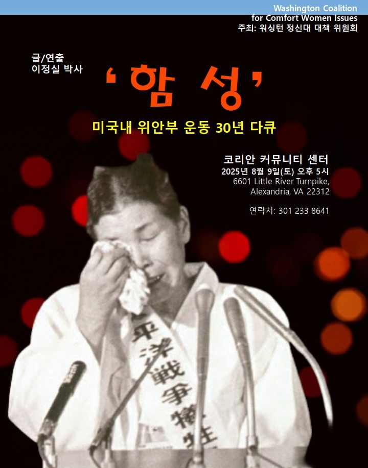 이정실 박사는 정대위 회장 재임 시절, 워싱턴 정신대 운동의 공공화와 제도화를 위해 앞장서며, 미국 의회와 주정부를 대상으로 한 위안부 결의안 통과 활동, 그리고 교육 및 기록 사업을 이끌어왔다. 이번 작품 ‘함성’은 그러한 지난 세월의 기록과 메시지를 시청각 언어로 담아낸 귀중한 자료로 평가된다.