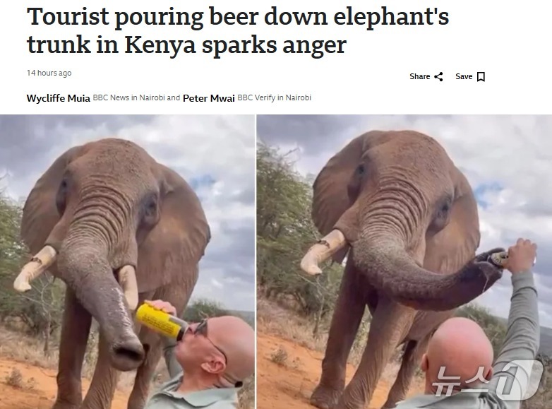 케냐에서 코끼리 코에 맥주를 들이붓는 관광객이 누리꾼들의 뭇매를 맞고 있다고 BBC가 29일 보도했다.