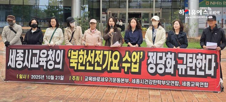 세종시 내의 한 중학교에서 수업 시간에 학생들에게 북한 선전가요를 들으며 가사를 받아쓰는 수업이 이뤄진 사실이 알려지자 학부모단체들이 강하게 반발하고 나선 가운데, 시 교육청 관계자는 “정상적인 교육과정에 따른 수업”이라고 입장을 밝혀 논란이 커지고 있다.