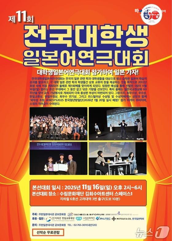 한편 주한일본대사관 공보문화원이 한일 국교정상화 60주년을 기념해 ‘제11회 전국 대학생 일본어 연극대회’를 개최한다.