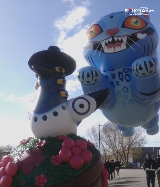 케데헌 대형 풍선의 추수감사절 퍼레이드 연습 모습