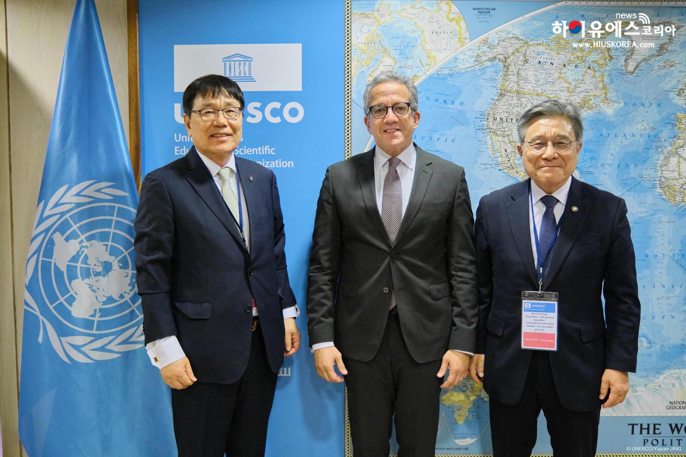 국가유산청은 또 “허 청장이 이번 면담에서 제48차 세계유산위원회 개최를 위해 신설한 전담조직과 예산 편성 등 위원회 개최 준비 상황과 추진 방향을 설명하고 성공적 개최를 위한 유네스코의 관심과 지원을 요청했다”고 전했다.