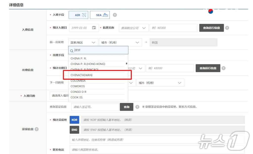그러면서 “한국은 대만 관광객들이 자주 방문하는 국가 중 하나로 대만은 한국인과의 깊은 우정을 소중히 여기고 있다”면서 “한국의 전자입국신고서에 대해 대만을 표기하는 방식은 명백히 사실에 부합하지 않고 대만 관광객들이 입국 과정에서 불필요한 어려움을 겪으며 대만 국민의 감정을 상하게 한다”고 강조했다.