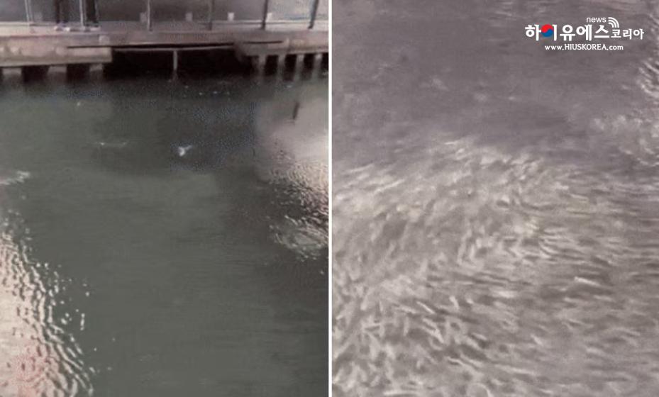 최근 요미우리TV 등 일본 언론에 따르면 지난 18일 오사카 도톤보리강 수면을 가득 메울 정도로 물고기들이 무리 지어 헤엄치는 모습이 잇따라 포착됐다.