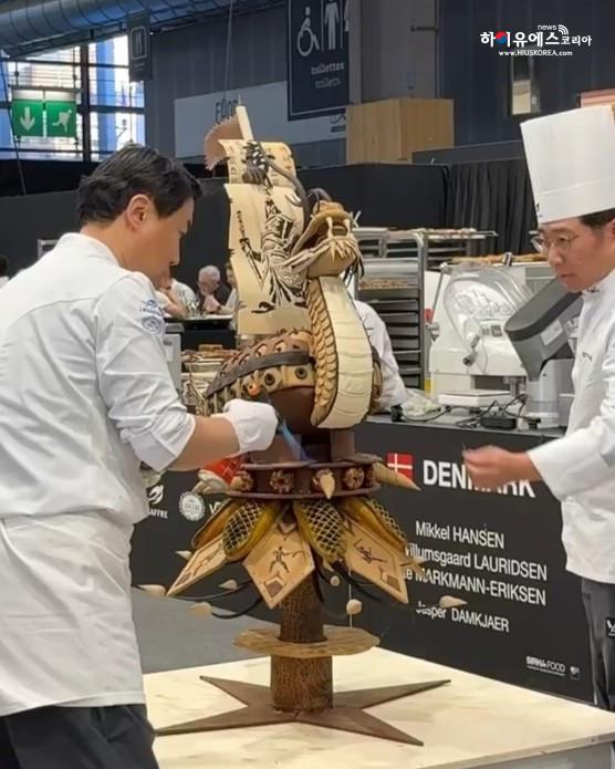‘자국의 위대한 발명품’이라는 주제로 열린 이번 대회에서 한국팀은 조선시대 군함인 ‘거북선’을 모티브로 해 용 머리와 돛·선체 등을 섬세하게 표현한 빵 공예 작품을 선보였다.